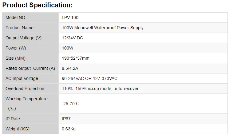 100W MEGERWELL NETZTEILE FÜR LED -STRIPS (wasserdicht)