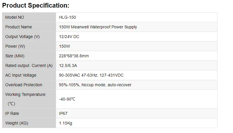 150W MEGERWELL NETZTEM FÜR LED -STRIPS (wasserdicht)