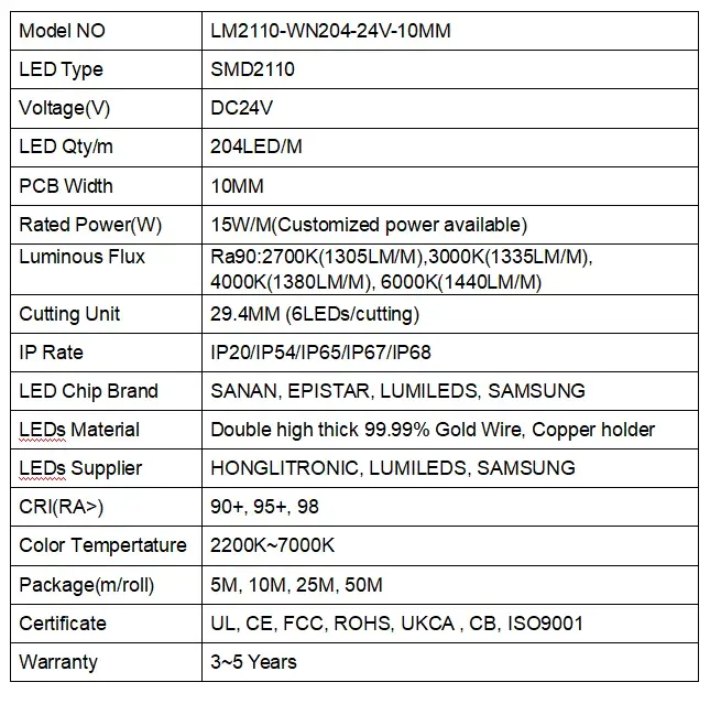2110 204leds/m 24 V 10 mm