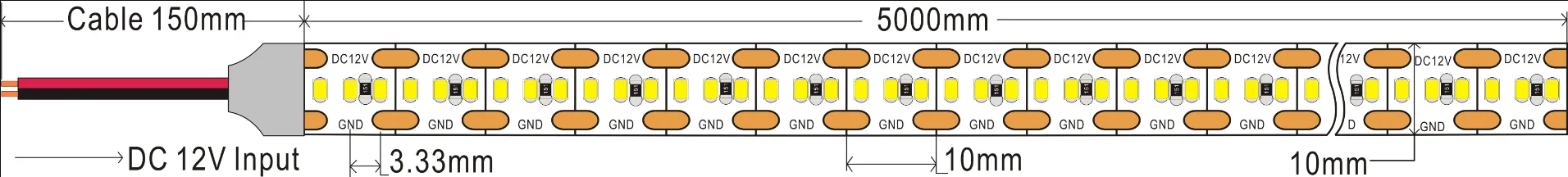 2835 128LEDS/M 48 V 10 mm konstanter Strom