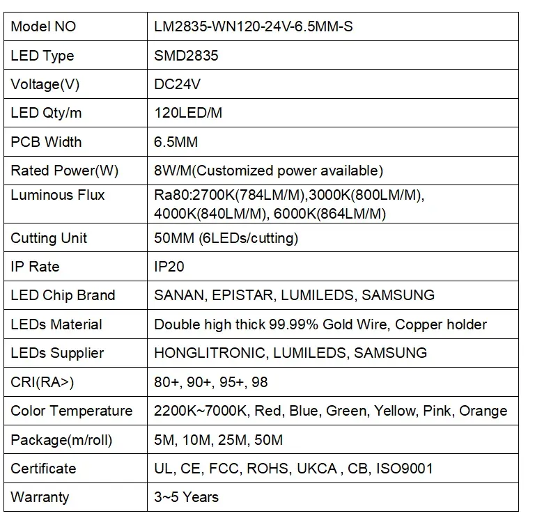2835 120LEDS/M 24 V 6,5 mm (S -Form)