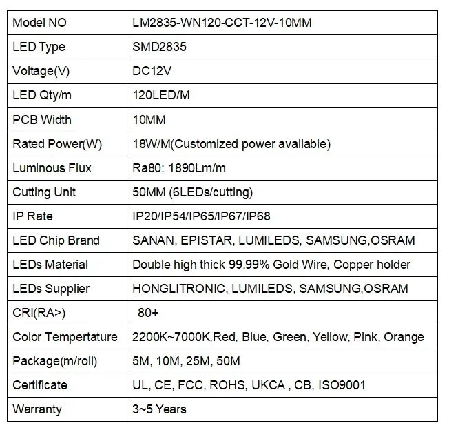2835 240LEDS/M CCT 12 V 10 mm Doppelzeilen