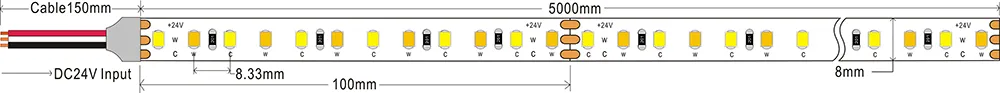 2835 120LEDS/M 2in1 CCT 24 V 5 mm