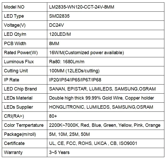 2835 240LEDS/M CCT 24 V 15 mm Doppelzeilen