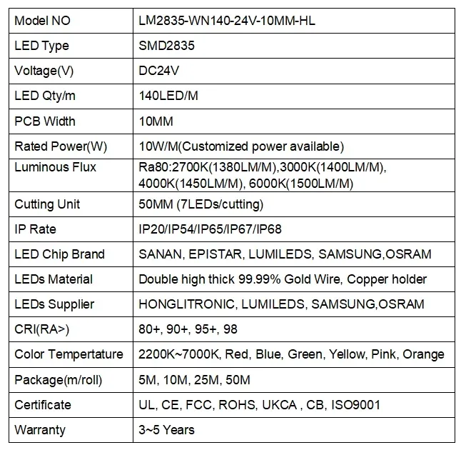 3014 140LEDS/M 24 V 10 mm konstanter Strom