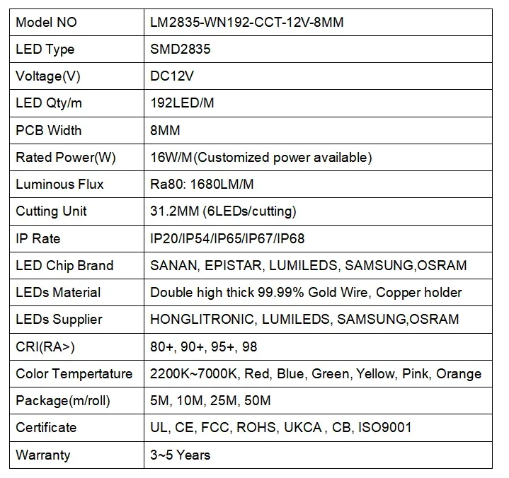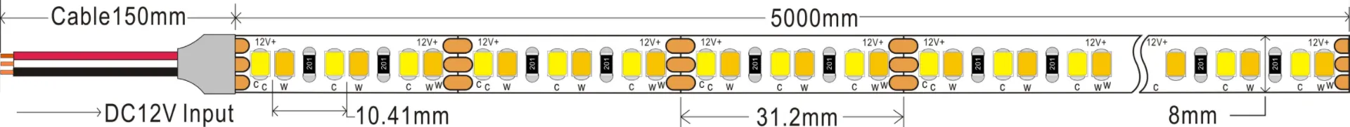 2835 240LEDS/M CCT 12 V 10 mm Doppelzeilen
