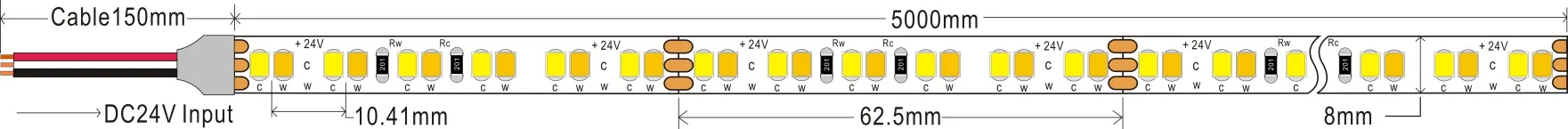 2835 120LEDS/M 2in1 CCT 24 V 5 mm