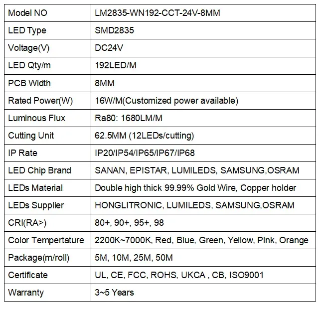 2835 240LEDS/M CCT 24 V 15 mm Doppelzeilen