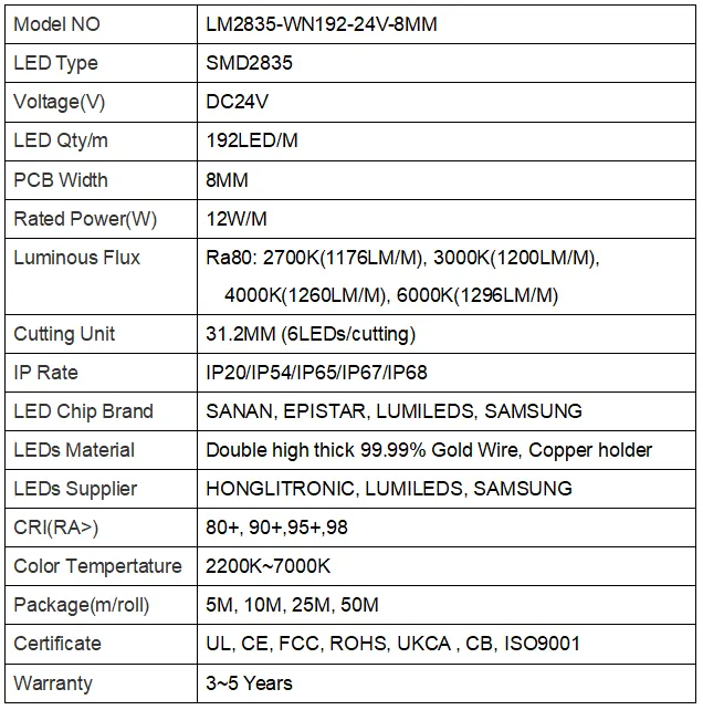 2835 192leds/m 24 V 8mm