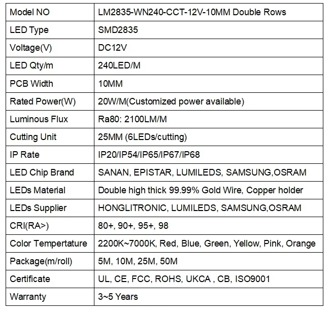 LM2835-WN240-CCT-12V-10mm Doppelreihen