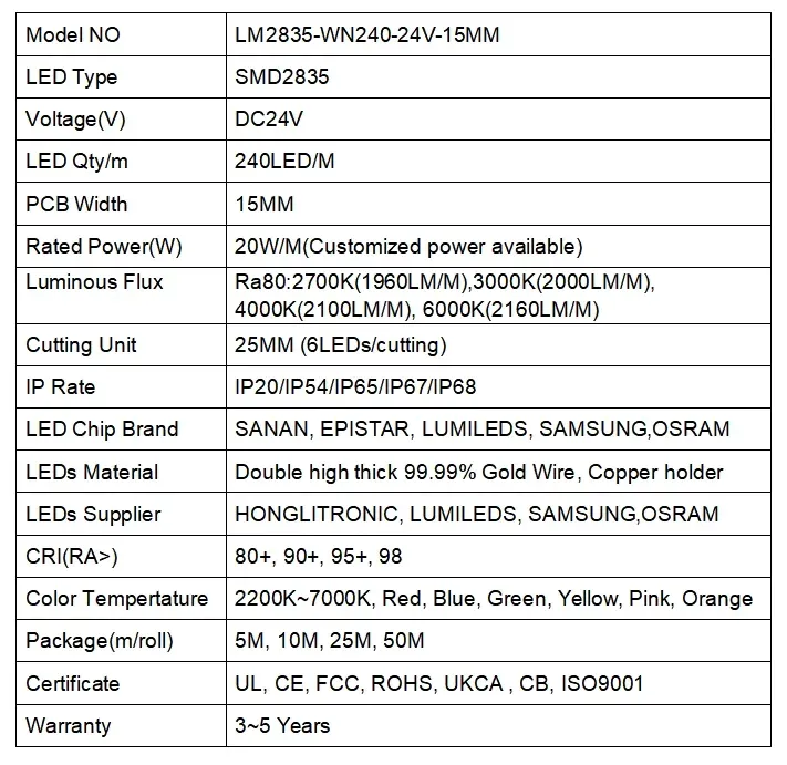 2835 240Les/m 24 V 20 mm Doppelreihe