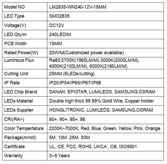 2835 240Les/m 24 V 10 mm Doppelreihe