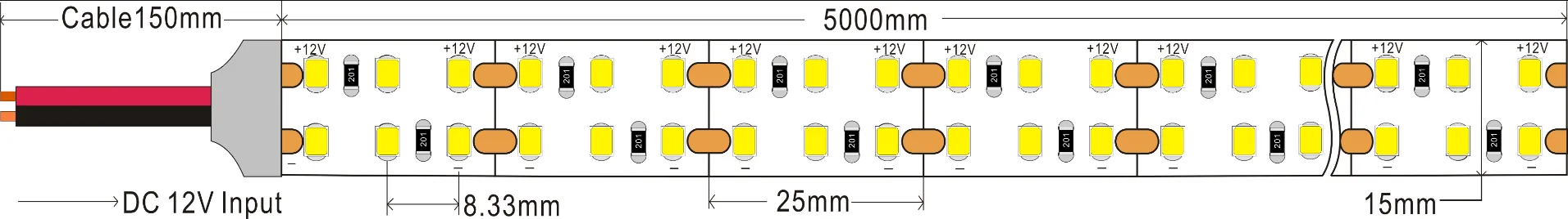 2835 120LEDS/M 24 V 5 mm konstanter Strom