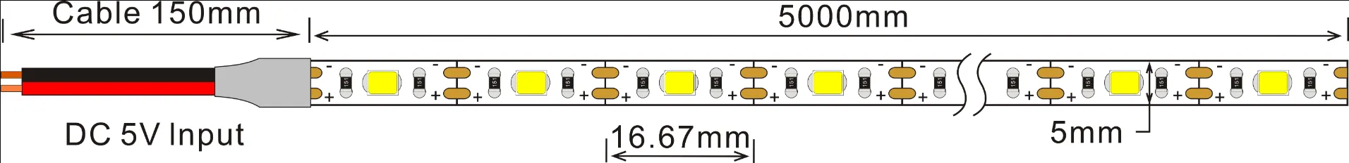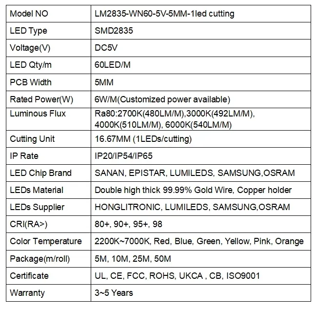 2835 60LEDS/M 5V 5 mm 1LED Schneiden