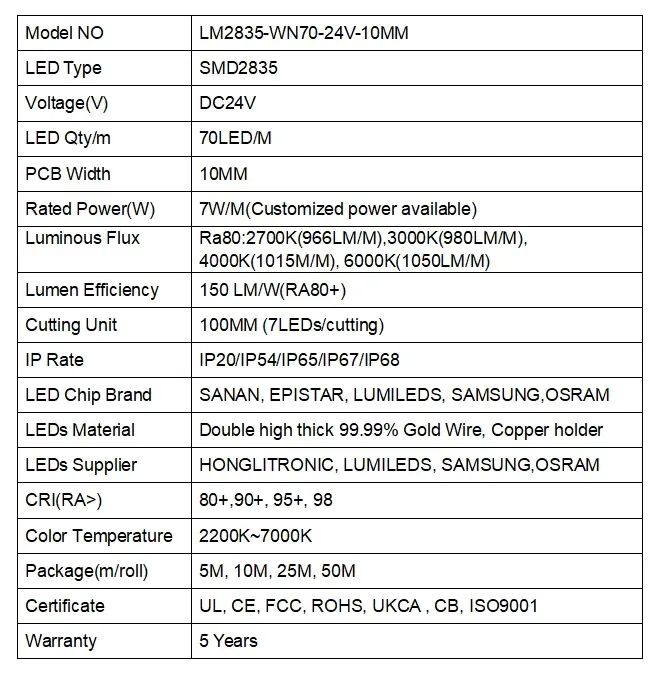 2835 70Les/m 24 V 10 mm