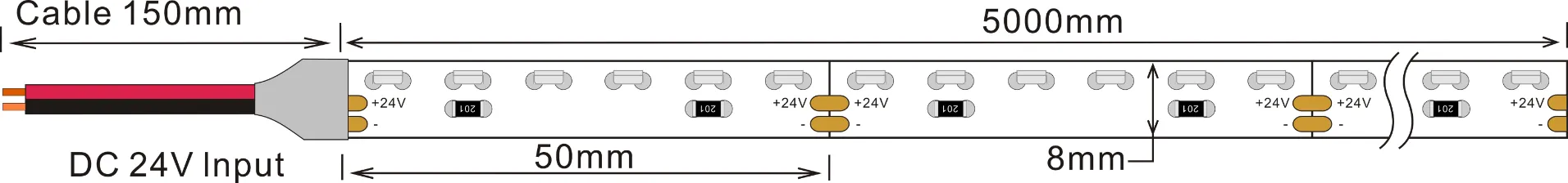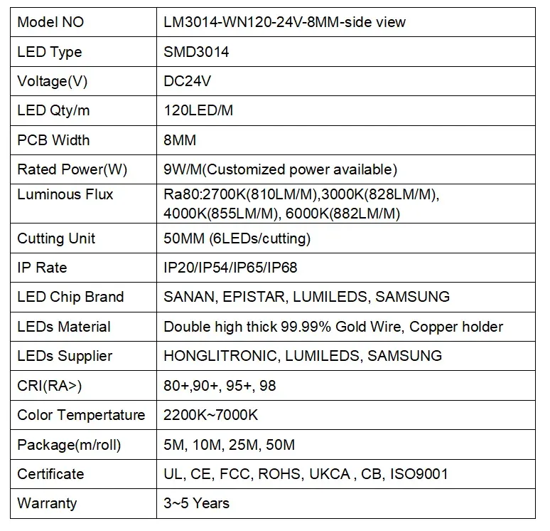 3014 120LEDS/M 24 V 8 mm (Seitenansicht)
