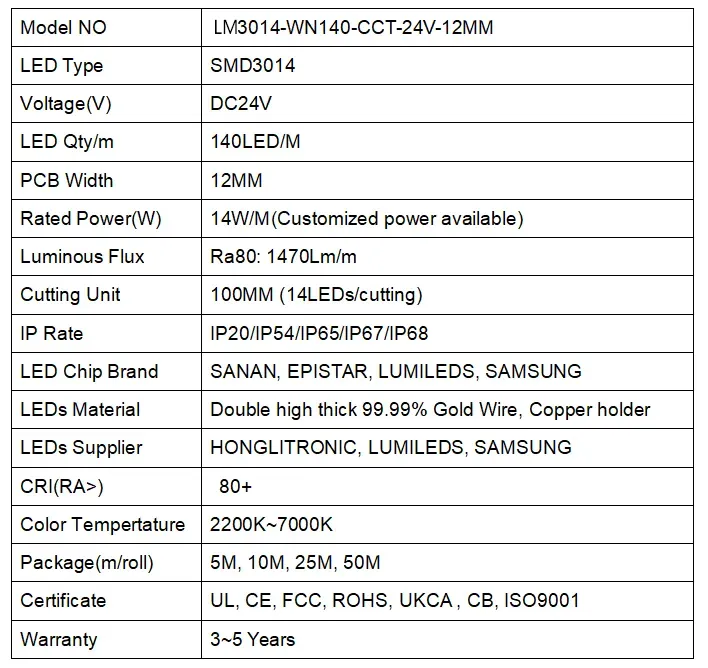 2835 240LEDS/M CCT 12 V 10 mm Doppelzeilen