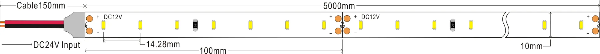 2835 240Les/m 24 V 10 mm Doppelreihe