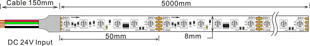 5050 60LEDS/M RGB 512 24 V 12 mm