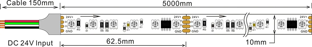 5050 72LEDS/M RGB MAGIC 512IC 24 V 12 mm