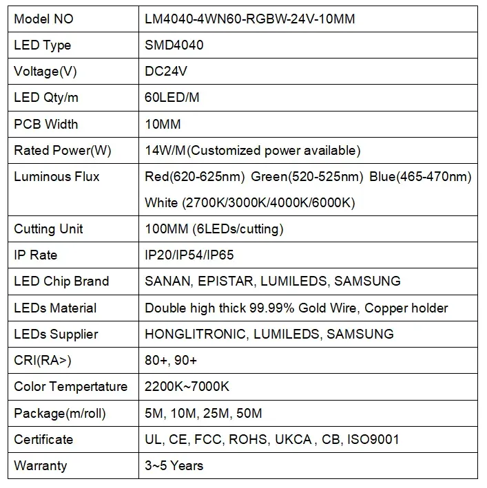 4040 60LEDS/M 4in1 RGBW 24 V 10 mm
