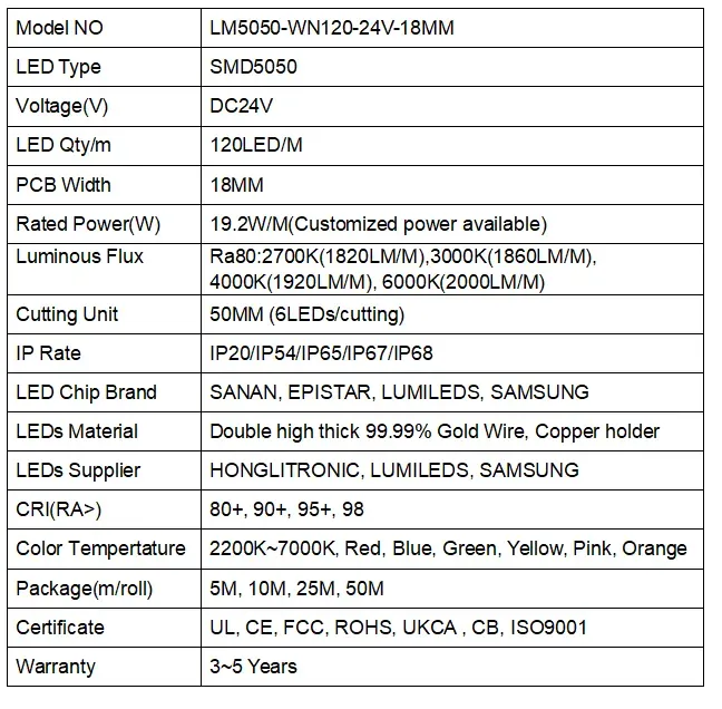 5050 120leds/m 24 V 18mm