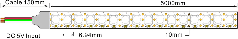 5050 60LEDS/M IC2815B 5V 10 mm