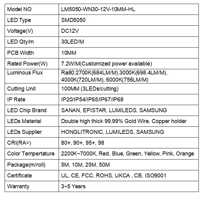 5050 30LEDS/M 12 V 10 mm konstanter Strom