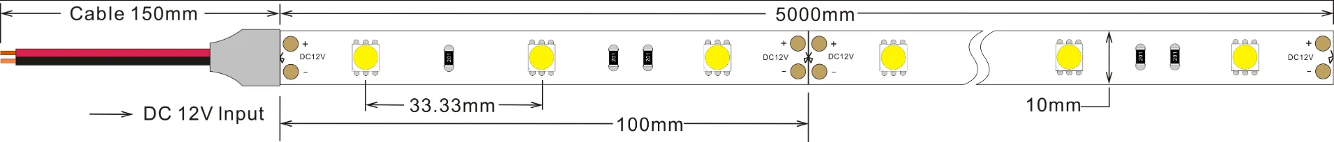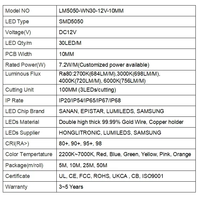 5050 30LEDS/M 12 V 10 mm