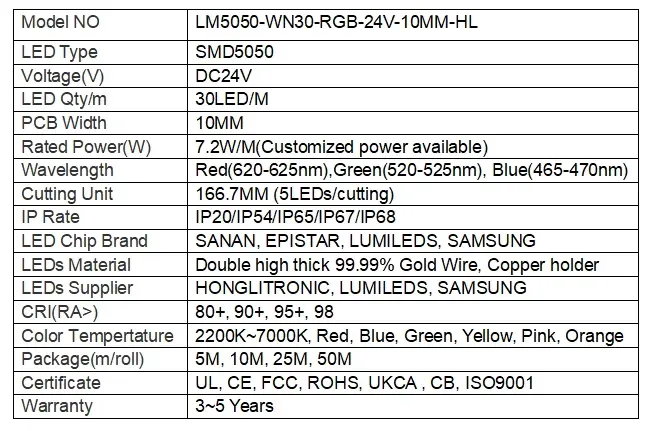 5050 30LEDS/M RGB 24 V 10 mm konstanter Strom