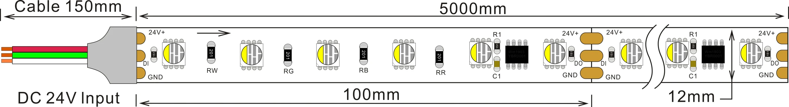 5050 5in1 60LEDS/M RGBCCT 1906 24 V 12 mm
