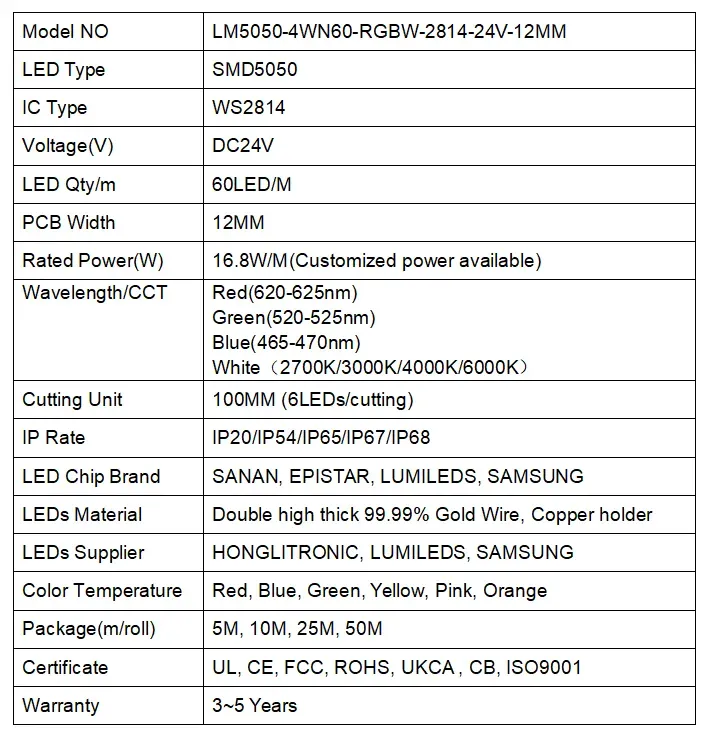 5050 4in1 60LEDS/M RGBW 2814 24 V 12 mm