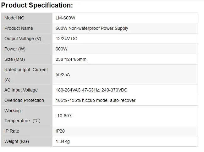 600W Stromversorgung für LED-Streifen (Nicht-Wassersicher)