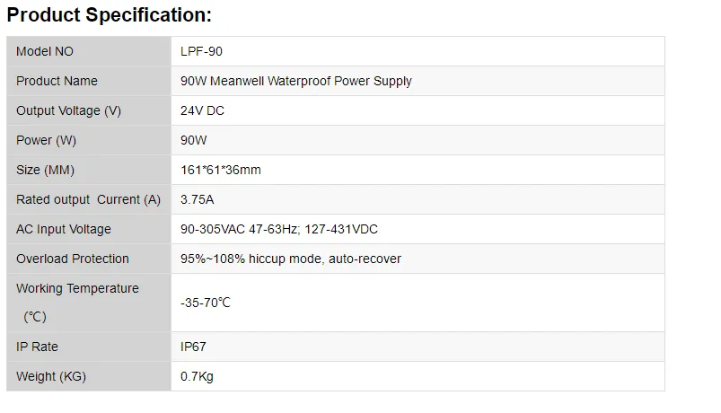 90W MEGERWELL NETZUGETE FÜR LED -STRIPS (wasserdicht)