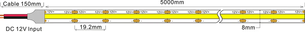 COB 324 LEDs/m 12 V 8mm Cri> 90