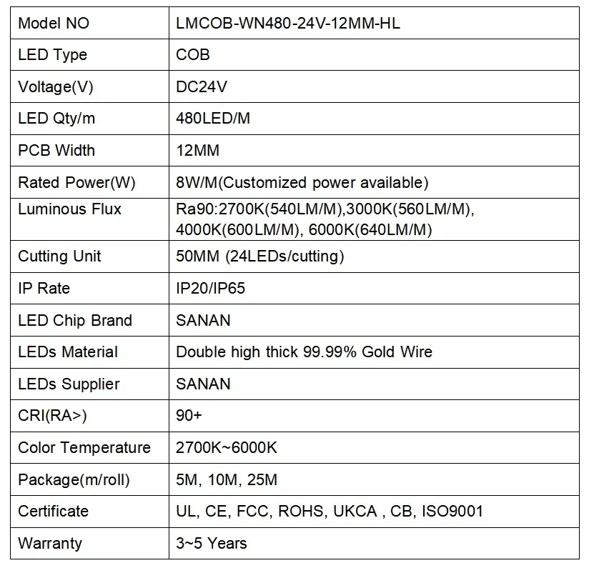 LMCOB-WN480-24V-12mm-HL